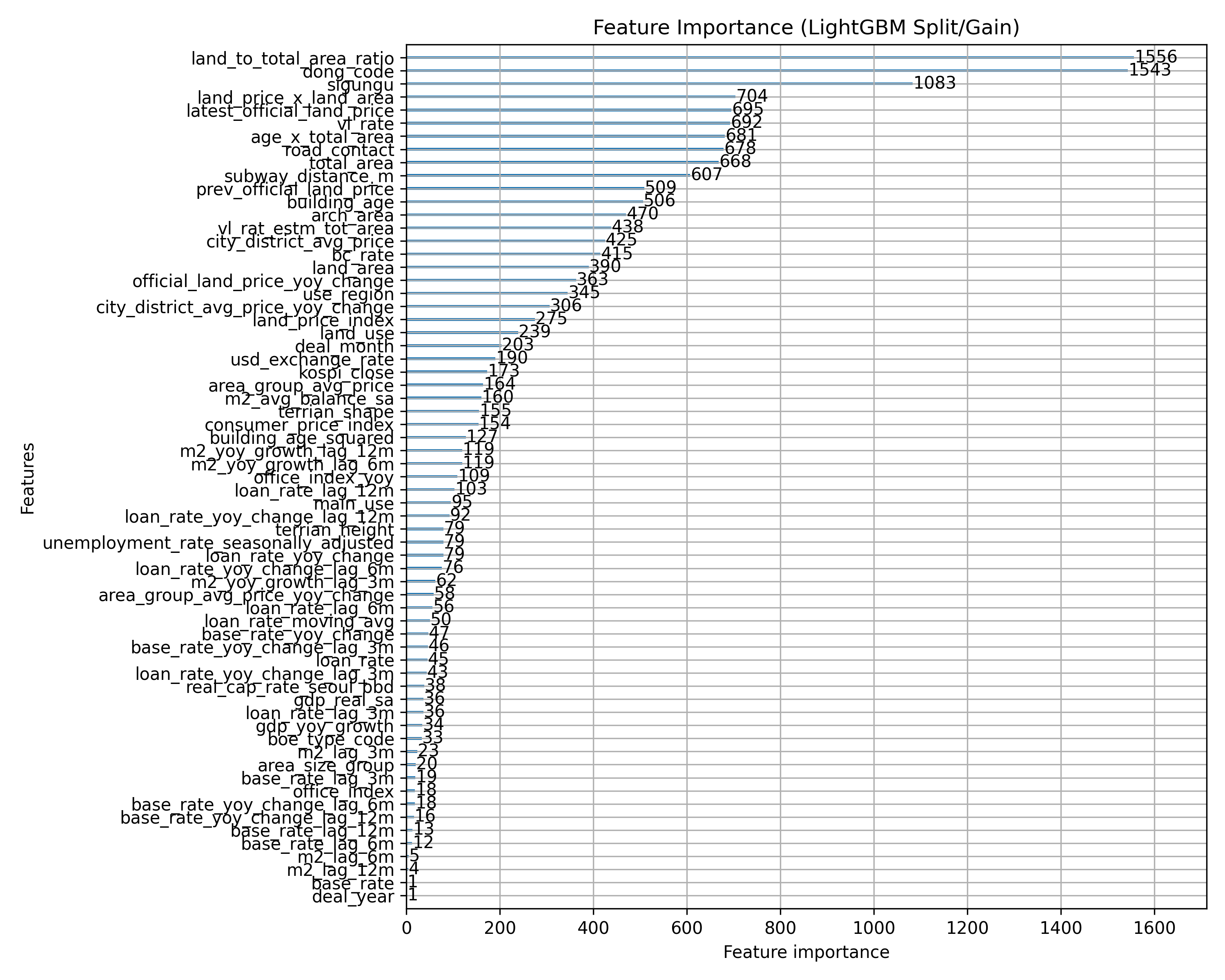 Split 기준 / Gain 기준 중요도는 빠르게 참고하기 좋습니다.